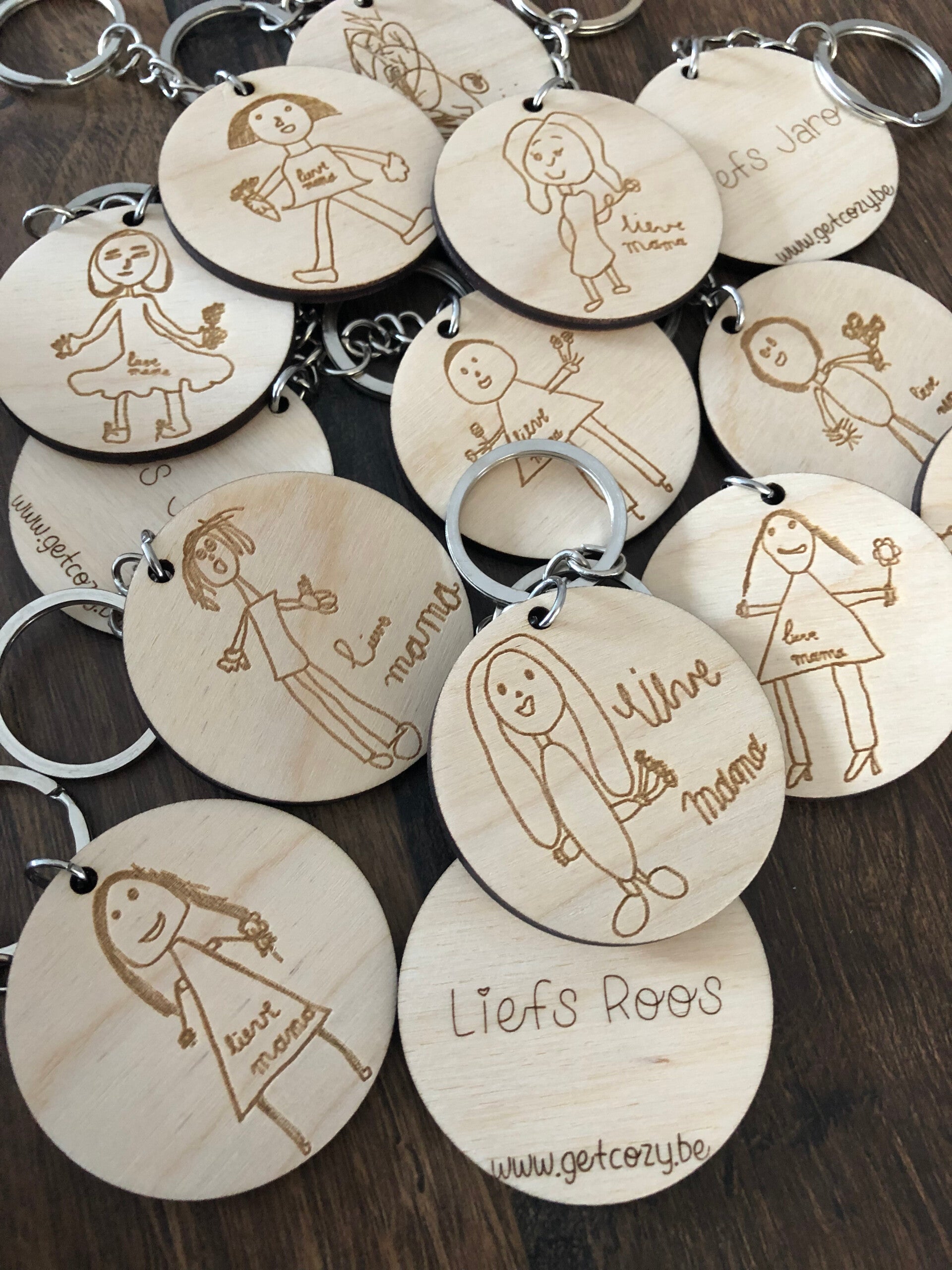 Deze unieke sleutelhangers zijn ideaal als geschenkje voor de ouders, grootouders, meter, peter, juf, meester, oppas, dagmoeder, noem maar op.